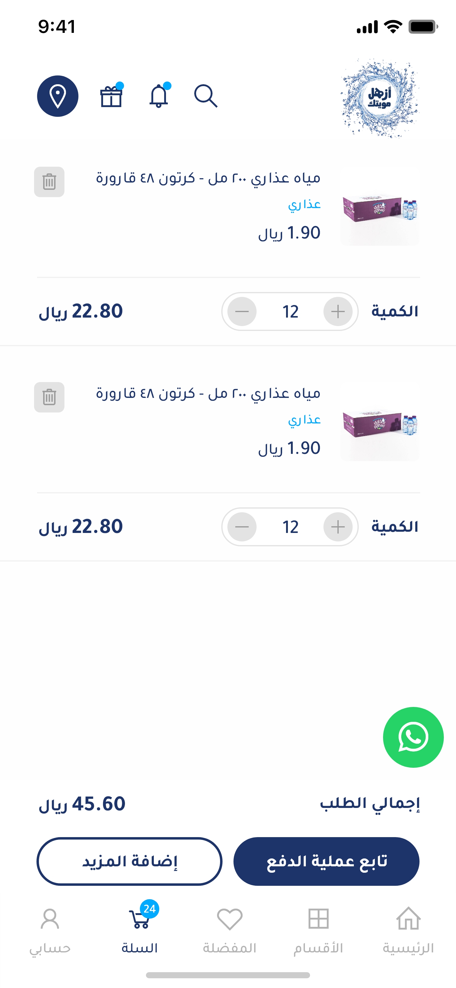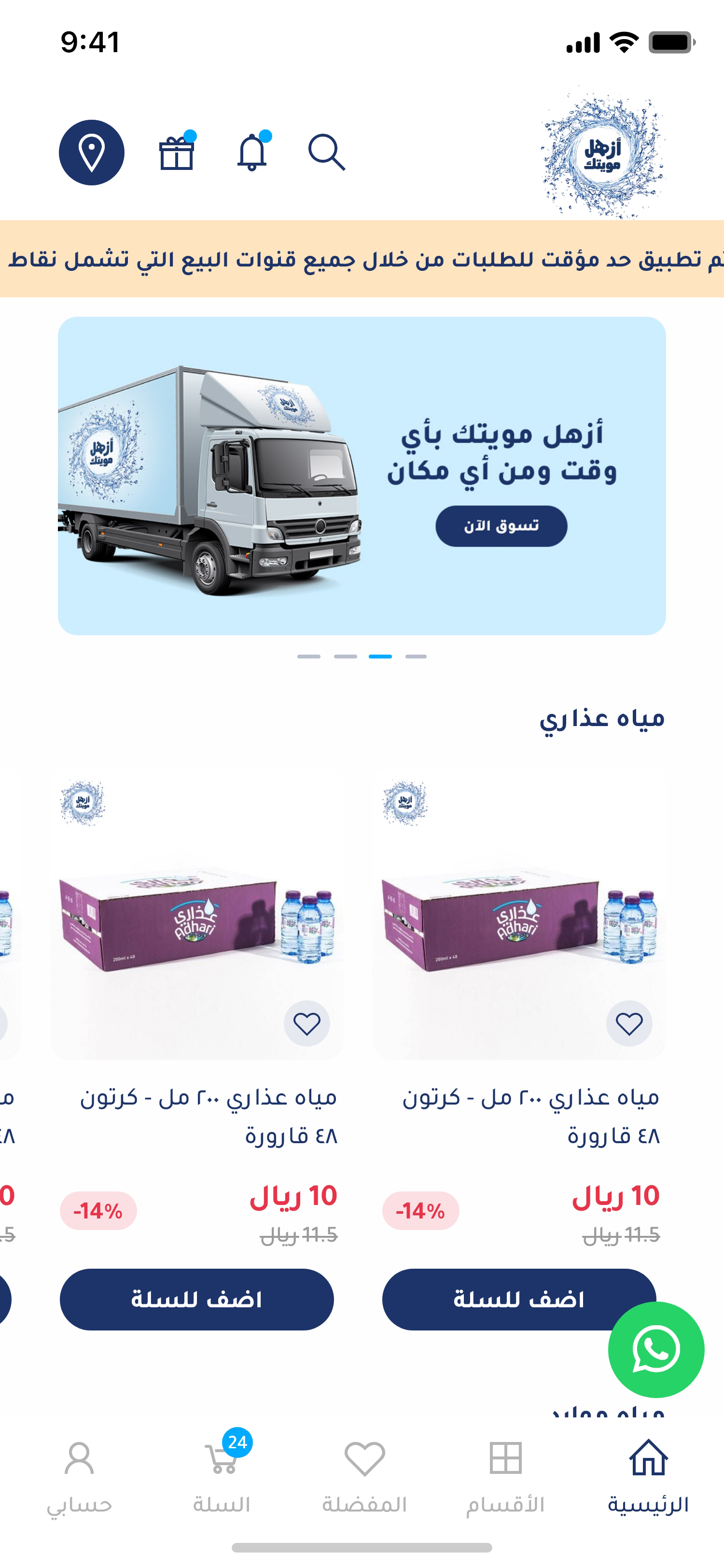 مياهك توصلك لباب بيتك في الوقت اللي يناسبك!